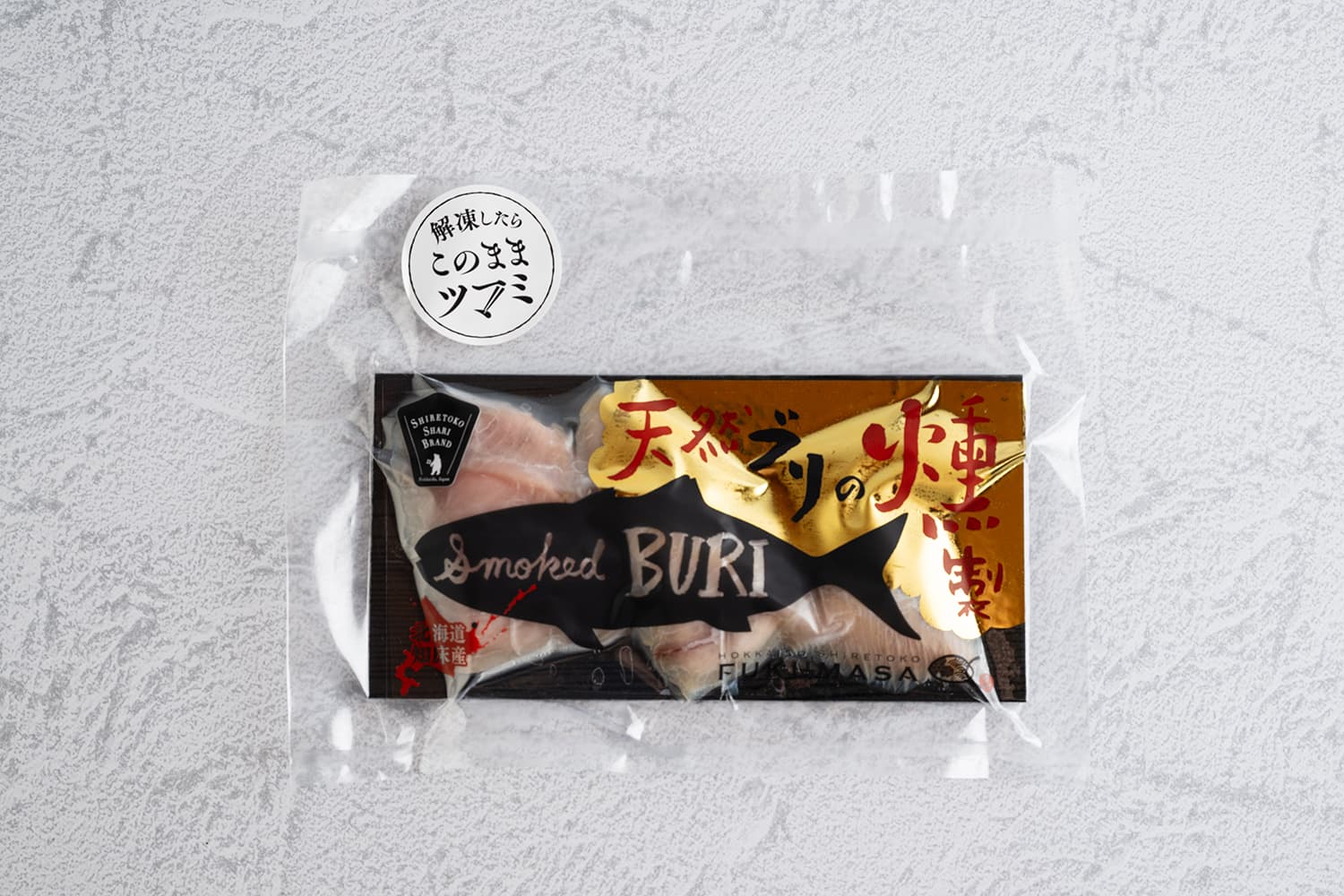 北海道知床産の天然鰤を使用し、独自の技術で塩味、甘味を加えて燻製しています。香り高いブナと熟成されたウイスキー樽の芳醇な香りが鰤の旨みを引き立て、深みのある味わいへと昇華させ、脂の旨み共に口の中でとろけるような余韻を残します。食べやすさにもこだわり、ひと口サイズにスライス済み。解凍して封を開ければすぐに極上の酒肴としてお楽しみいただけます。