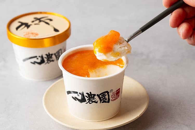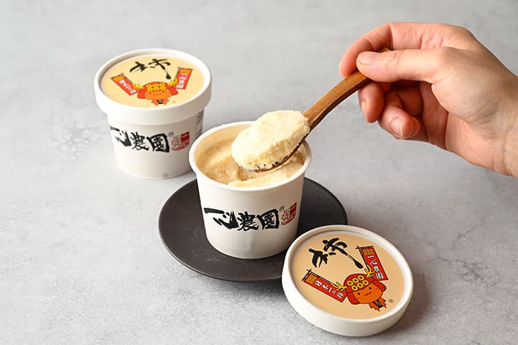 壺焼芋を使った全く新しいタイプのスイーツです。表面はカリカリでお口の中で溶かしながら食べて頂くとクリーミーな感じがお口に広がります。表面のコーティングは、お砂糖等は一切使用せずお芋の蜜が纏われております。味付けには塩が少し使われているのみです。冷凍庫から出してそのまま食べるも良いですし、5分~10分待ち、少し溶かしてから食べるのもおすすめです。