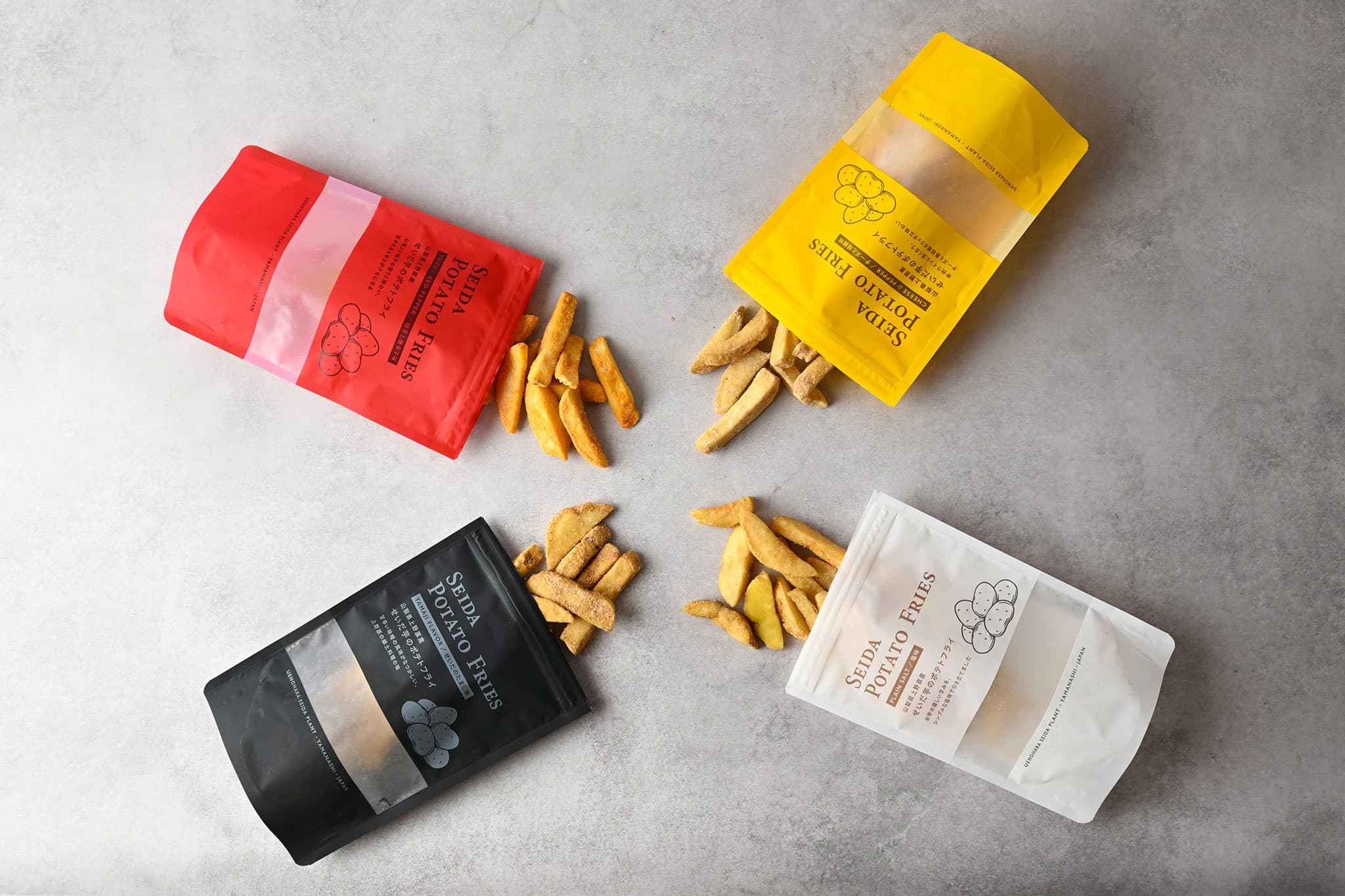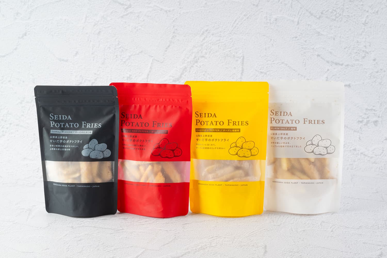 ジャガイモの神様の郷、山梨県上野原産ジャガイモを使った「せいだ芋のポテトフライ」。「せいだ芋」とは、上野原近辺でのジャガイモの別名です。江戸時代、ジャガイモの栽培を奨励し、甲州の人々を飢饉から救った代官・中井清太夫(なかいせいだゆう)の名に由来します。代官は、市内の龍泉寺に「芋大明神」として祀られています。芋本来の甘みと旨み、キリッとした塩味、サックサクの心地よい食感をお楽しみください。